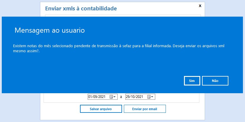 - Adicionada mensagem que informa ao usuário a existência de notas pendentes de transmissão no período, indagando se deseja enviar os xmls mesmo assim.