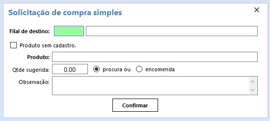 - Implementar a possibilidade de informar a filial de destino ao cadastrar a solicitação de compra simples.
