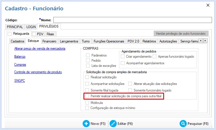 Para o funcionário ter permissão de selecionar filial, o mesmo precisa ter marcado o seguinte privilegio.