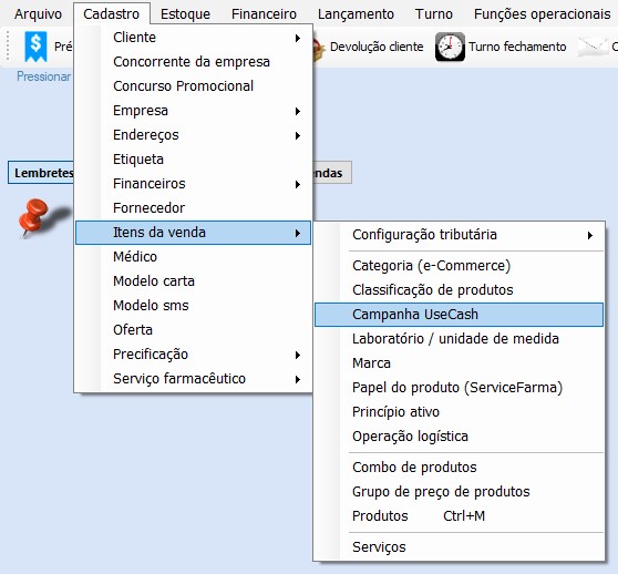 - Foi criado o cadastro de campanha usecash, e com isso também atualizado a view do mesmo, foi inserido o campo na alteração em lote e na tela de cadastro de produtos, para acessar o cadastro basta seguir o caminho mostrado no print.
