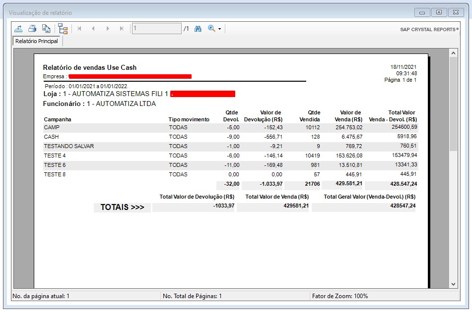 Implementado relatório analítico e sintético das vendas para produtos que participam da campanha UseCash.