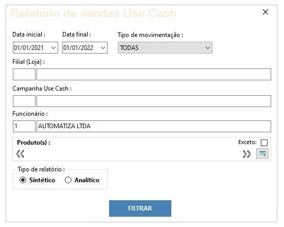 Implementado relatório analítico e sintético das vendas para produtos que participam da campanha UseCash.