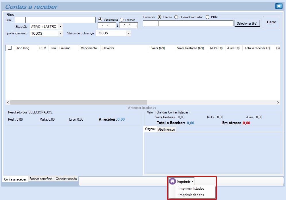 - Implementado na tela de Contas a Receber a opção de imprimir o relatório dos débitos do cliente selecionado na tela.
