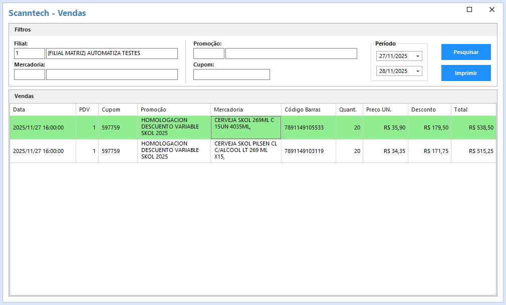 Foi acrescentado um relatório para acompanhamento de vendas de produtos promocionais. O relatório ficará disponível no caminho: Funções Operacionais > Integrações > Scanntech > Vendas.