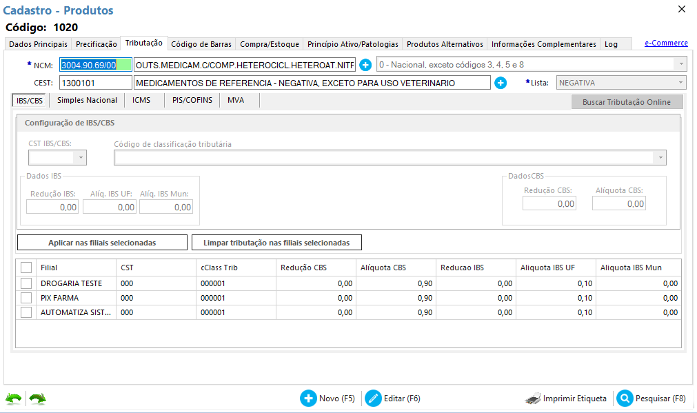 Visando atender a nova legislação, foi criado no cadastro de produto uma nova aba para permitir a configuração tributária do IBS e da CBS. Dessa forma, os itens constantes nos anexos da lei poderão ser configurados conforme suas especificidades.